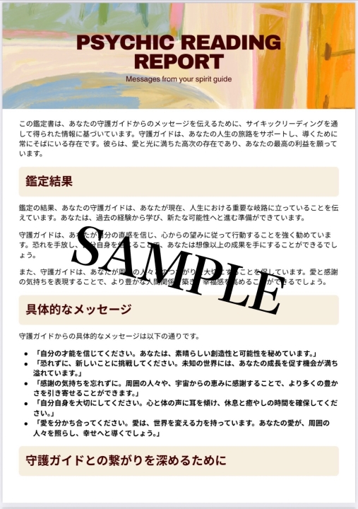 このメール鑑定では、守護ガイドと繋がり、あなたの今のお悩みに対するメッセージと、これからのヒントをやさしくお伝えします。